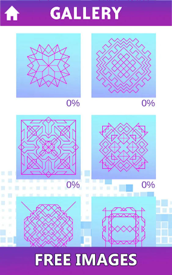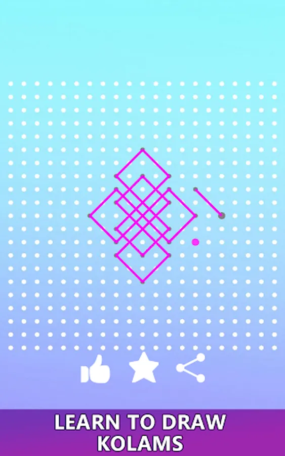 Kolam signifying a creative expression of art by means of colors. Rangoli designs also known as Kolam or muggu is a folk art from India. All rangoli designs are described with picture steps to make it easy to draw for all rangoli designs lovers. It's an art in which patterns are created on the floor in living rooms or courtyards using materials such as colored rice, dry flour, colored sand or flower petals. But now you can make holy designs only with your finger on the screen.