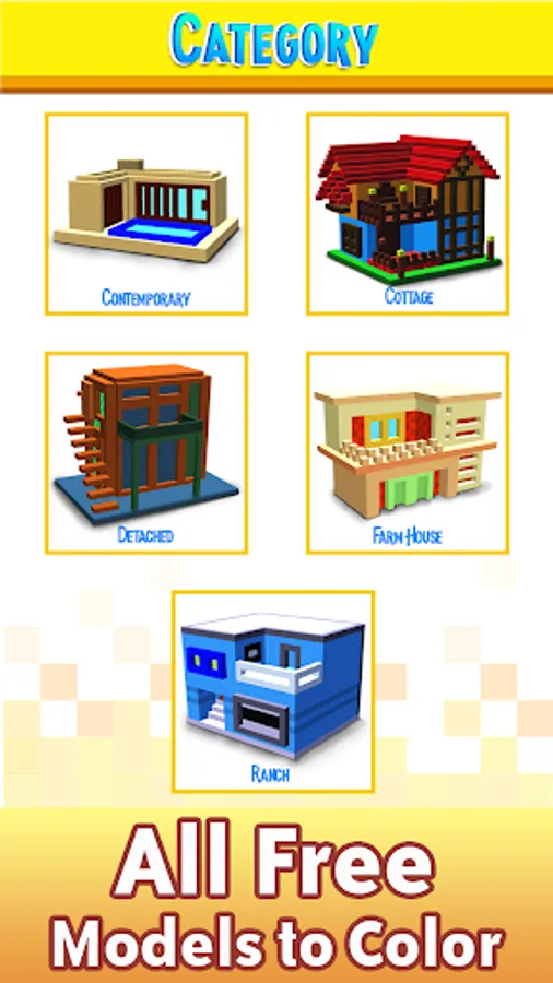 Eliminate the fatigue of the daily routine by discovering your interior and exterior skills while painting on modern 3d house designs. Come and experience the 3d dimensions to decorate your house. Focusing on your own feelings, creating excellent buildings with this Voxel Coloring Book. A house will look beautiful and comfortable with the selection of paint colors by the room. Make sure you create a color design according to numbers that fit with the concept of a modern house.