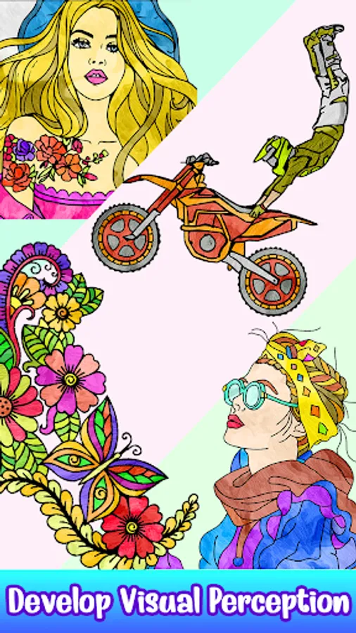 - Paint colorful animals, florals, houses, girl's images and bring pictures to life in a short time by coloring by numbers.