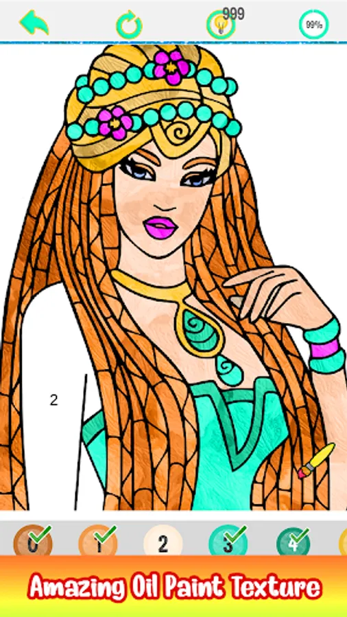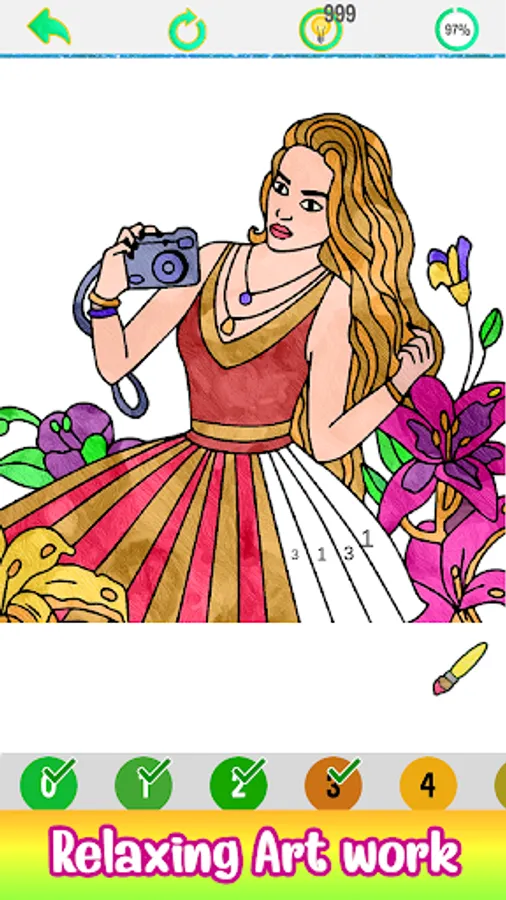 - All pictures are marked by numbers, just choose one image to follow your heart, and tap the corresponding coloring cells according to the coloring numbers of the palette.