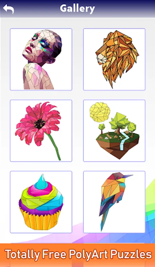 Poly Art is a brain training puzzle game that allows you to arrange a collection of polygonal puzzle pieces and create fantastic images!