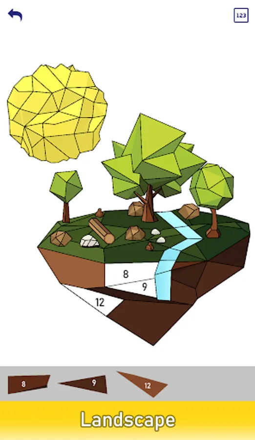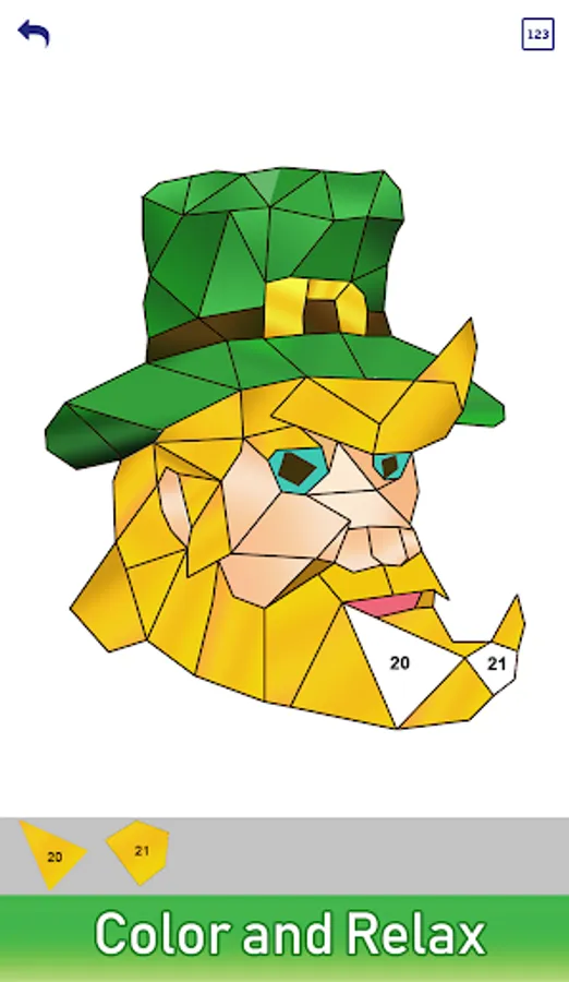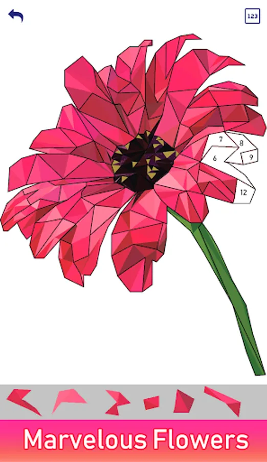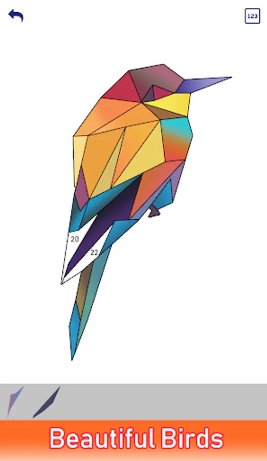 Poly Art LowPoly is a polygon based puzzle game, revolving around the theme of coloring by number geometric figures, which results in mesmerizing short animated videos displaying the coloring process of numerated low poly pieces.