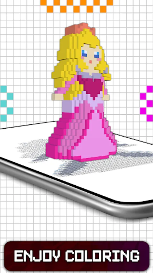 There are many interesting pixel pages and number books for you to color. So, if you're looking for great fun, our princess color by number is the best drawing and 3d coloring game.