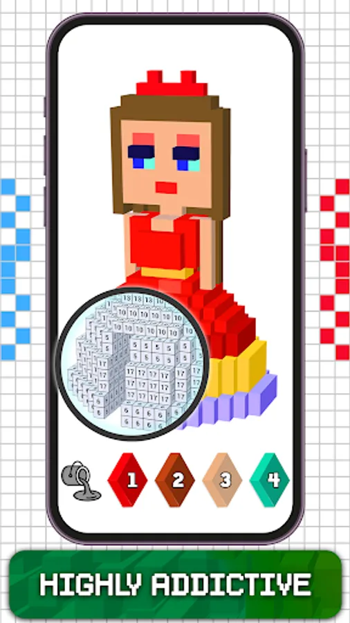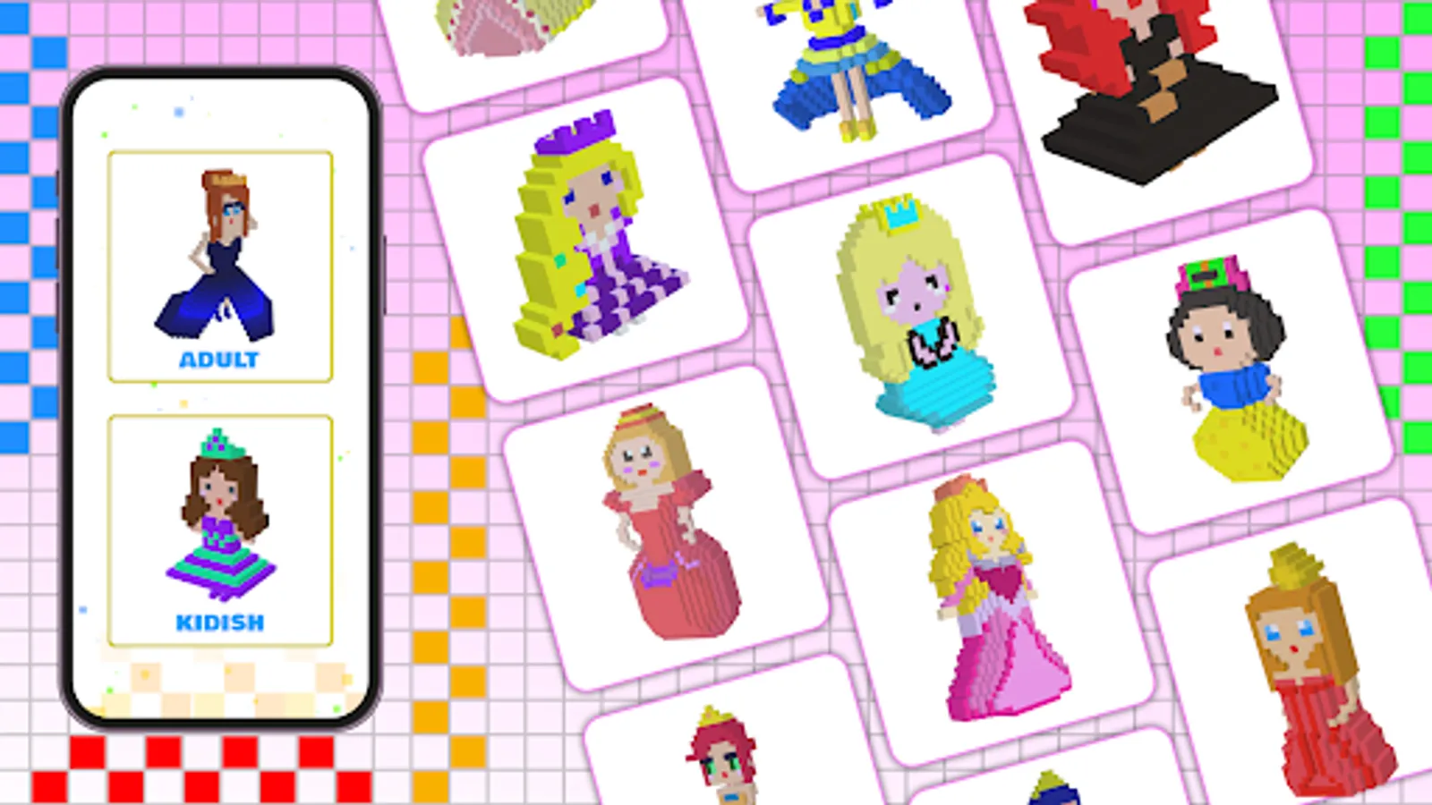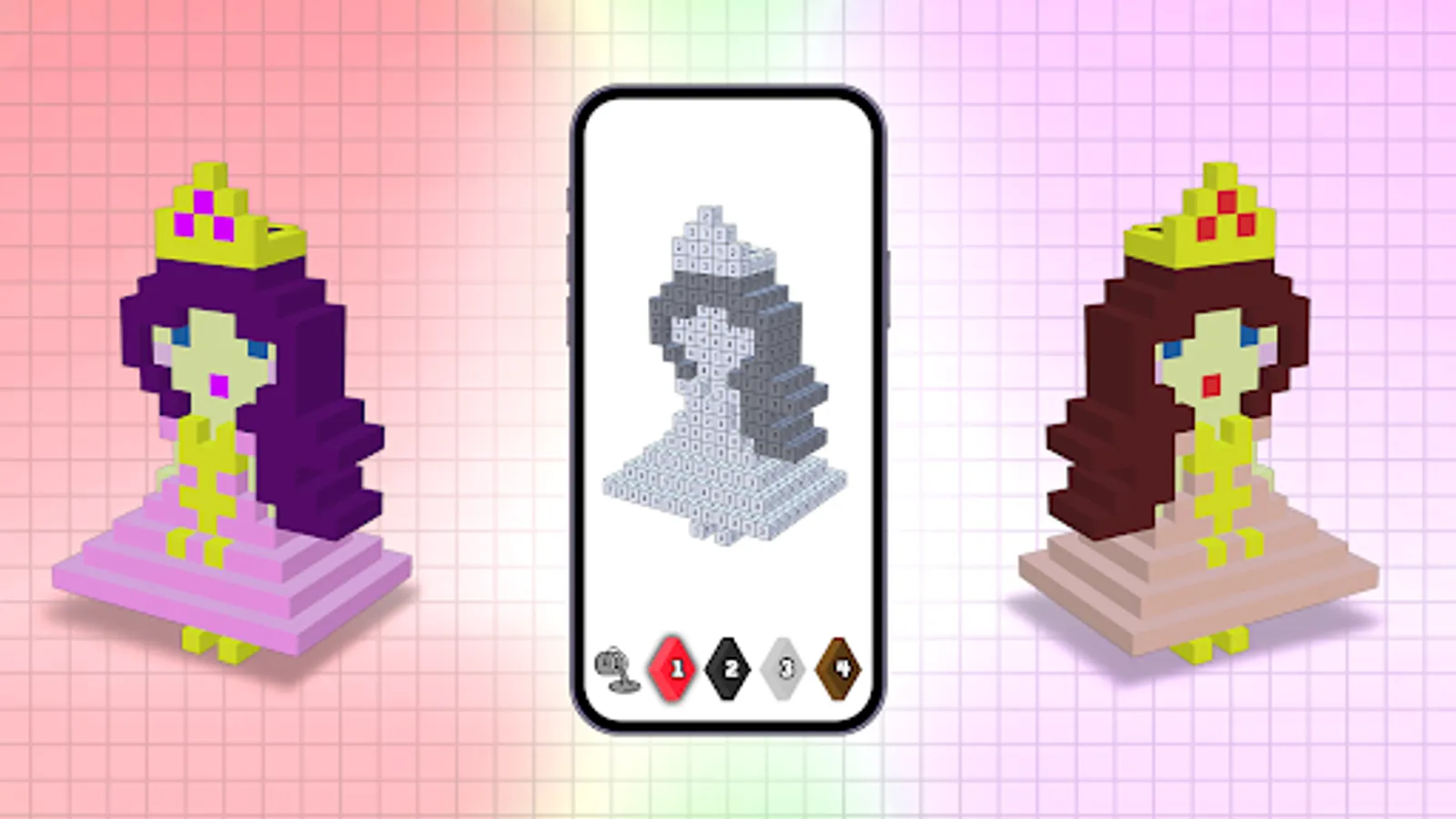 - Beautiful exotic designs to decorate voxel princesses with shiny glitter colors.