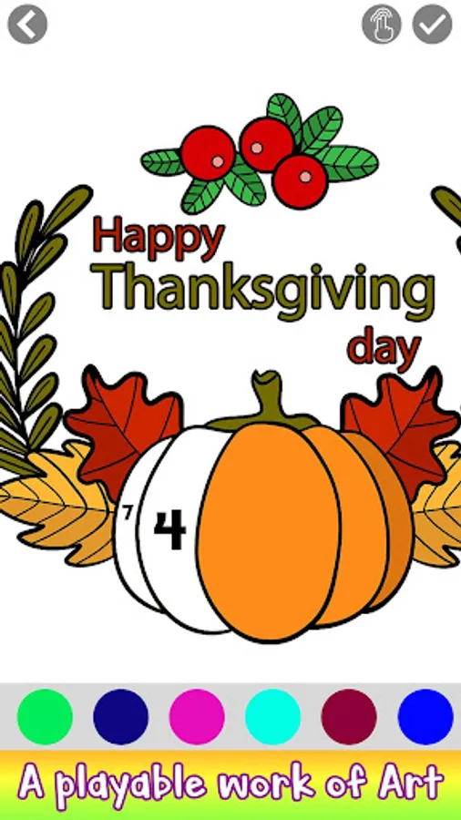 You will find a lot of fun in coloring the wonderful Thanks Giving cards and make a collection of it and also you can set it on your mobiles as a wallpaper and so on.Share your feelings with your friends and family with ThanksGiving Cards Color by Number and get yourself amused with this free app.