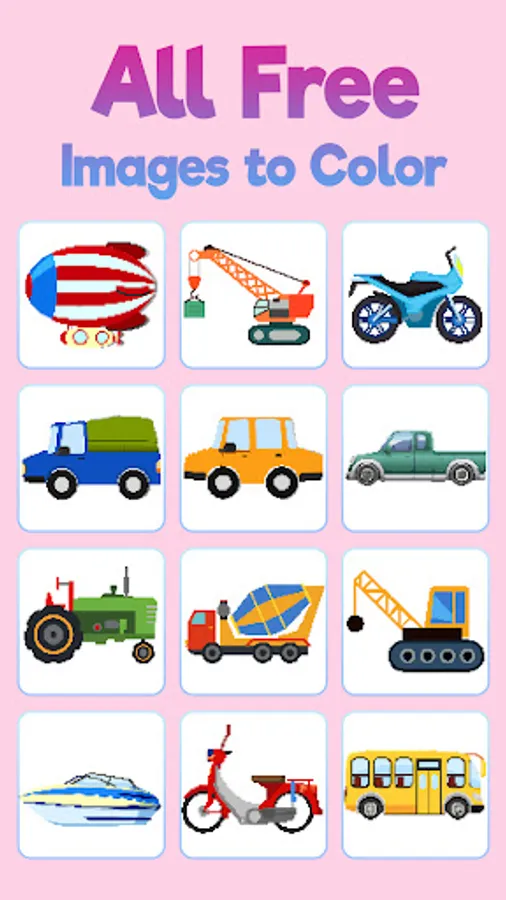 - Choose the vehicle category or picture you want to paint by numbers.