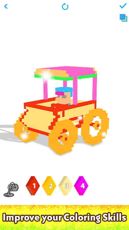 - Enjoy creating anti-stress pixel art vehicles with sparkly glitters or simple solid colors.