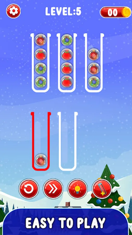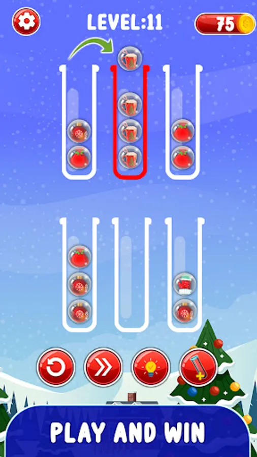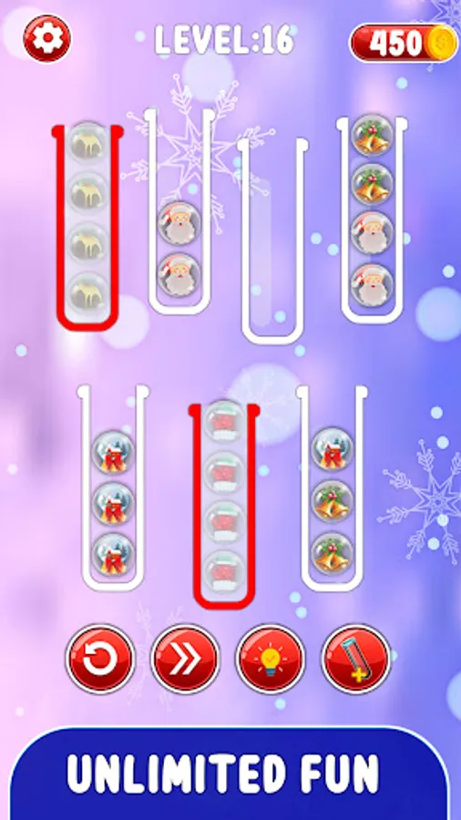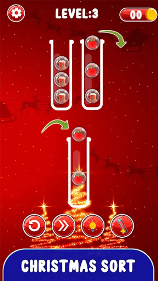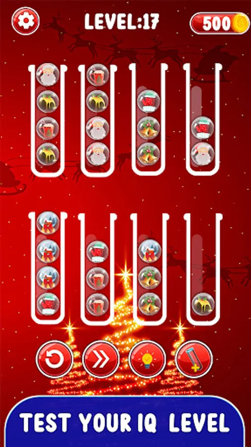 Your task is rather simple use your mind to sort the same color Christmas characters and combine them in 1 bottle.