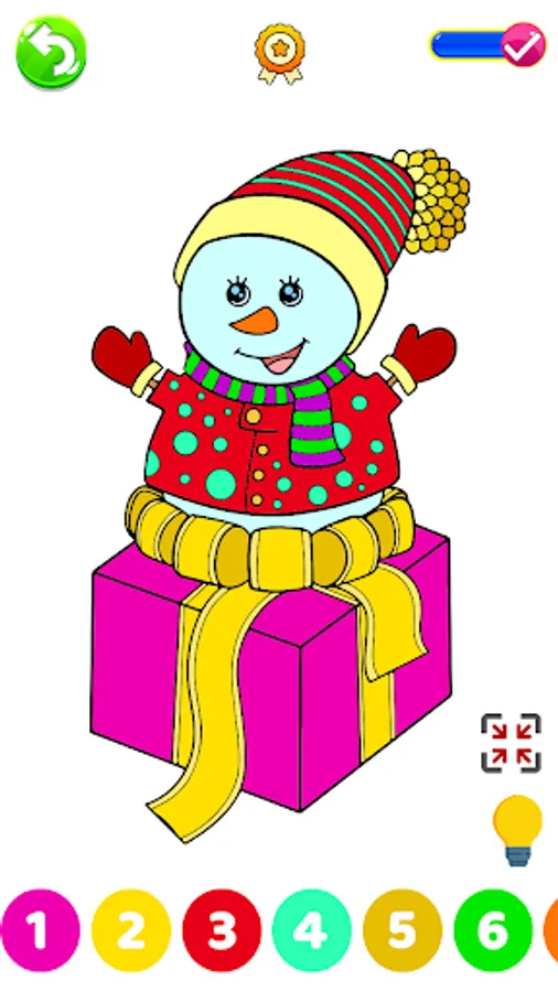 - Feeling comfortable with coloring xmas tree, snowman and christmas gifts.