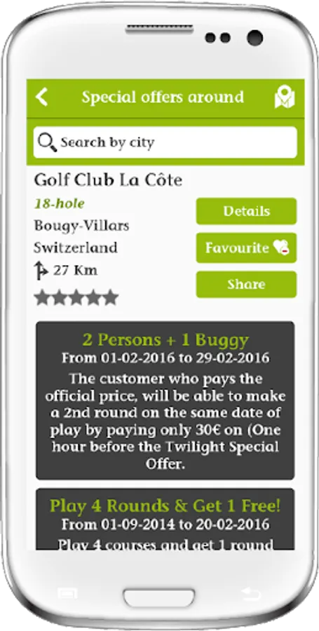 Geo-localised push notifications will inform you anytime, anywhere of the best offers and packages to provide you with some memorable rounds.