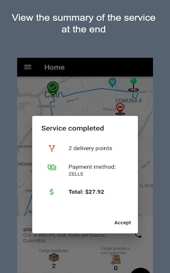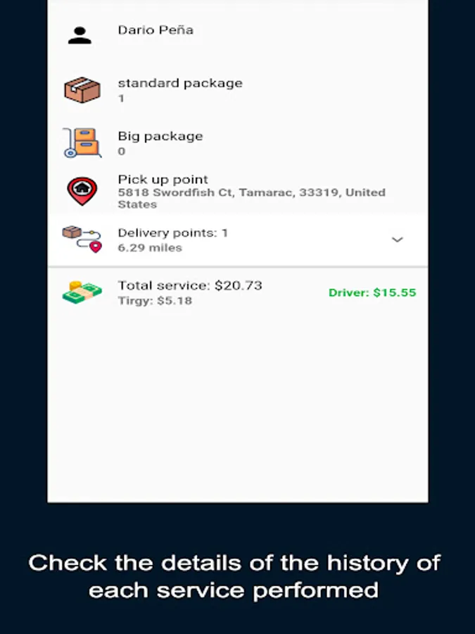With Tirgy Driver you can carry out product delivery services at home and earn up to 75% of the total for each service you perform. The app allows you to deliver several products to different delivery points in a single trip, thus generating more income for you.