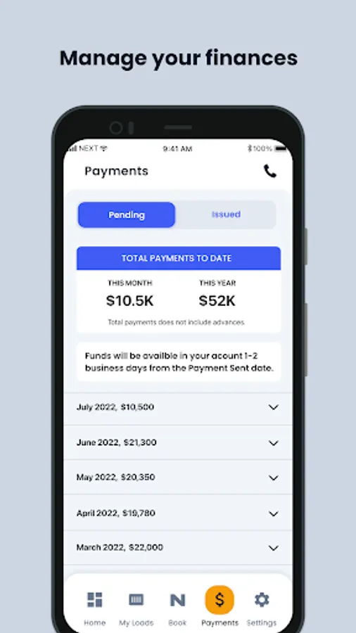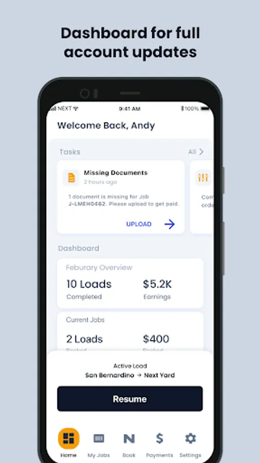 Whether you’re an owner-operator or a fleet manager, the NEXT app is here to simplify your life, streamline your work, and increase your earning potential. Book loads that fit your lifestyle and driving preferences so you can maximize your earnings, minimize stress, and take full control of your schedule.