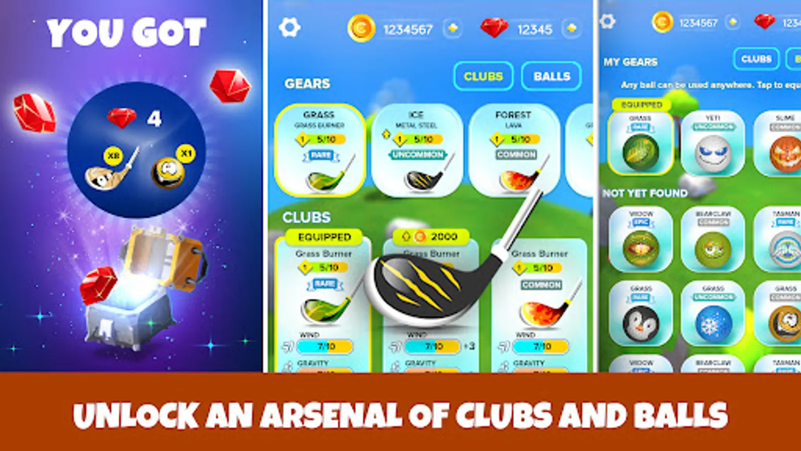 * Unlock and upgrade an arsenal of Golf Clubs and Ball Skins.