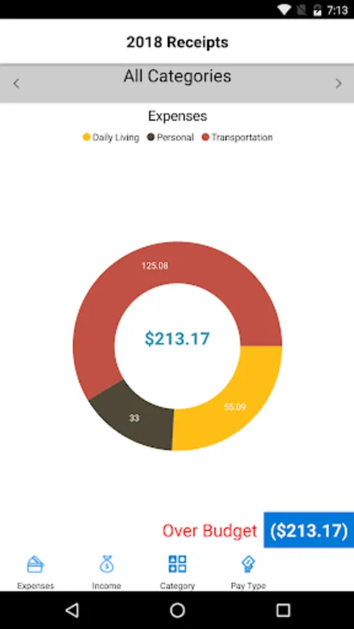 So how’s your budget? Need help getting spending under control? Set a personal budget goal for each expense Category and Category Type. Enter income and expense receipts. Easy Receipt Log graphs show you how you’re doing by expense Category, Category Type, month, Payment Type, and more.