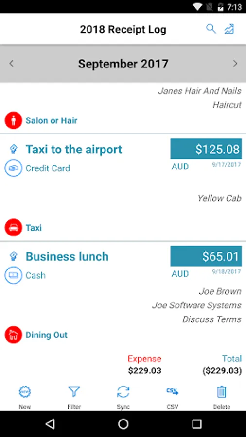 And finally, Easy Receipt Log lets you make complete backups of your files as part of your security routine. Keep your data safe and available to move onto a new phone if you need to.