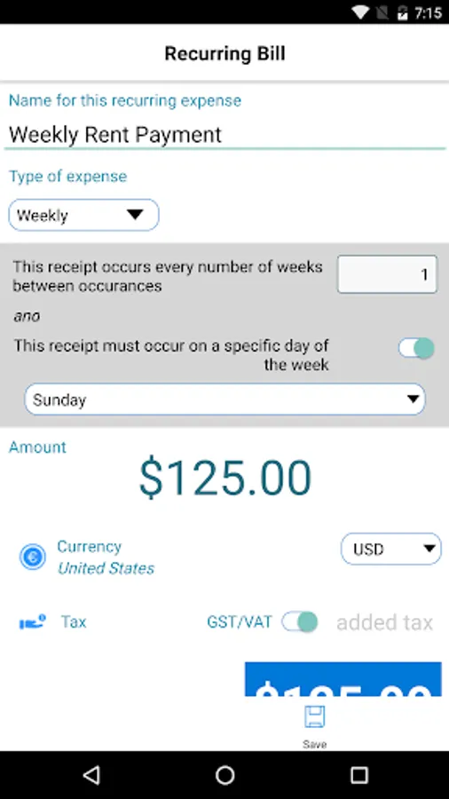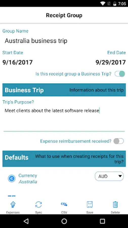 Dealing with multiple currencies? Set a currency default for the receipts for a particular trip. Or, change the currency on any individual receipt on the go. How much did that really cost? Easy Receipt Log supports multiple currency tracking and conversion—see immediately how much you just spent, in YOUR $$$.