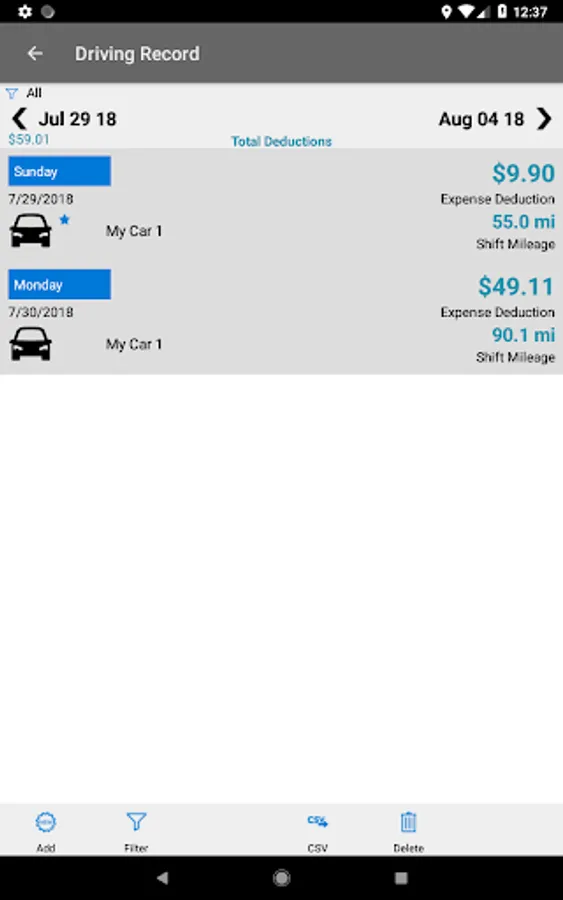 Manage your vehicle logbook — add any trips you missed and edit any trip details. Save your records to your cloud account or send them to your email — the CSV file is ready for your books and tax prep.