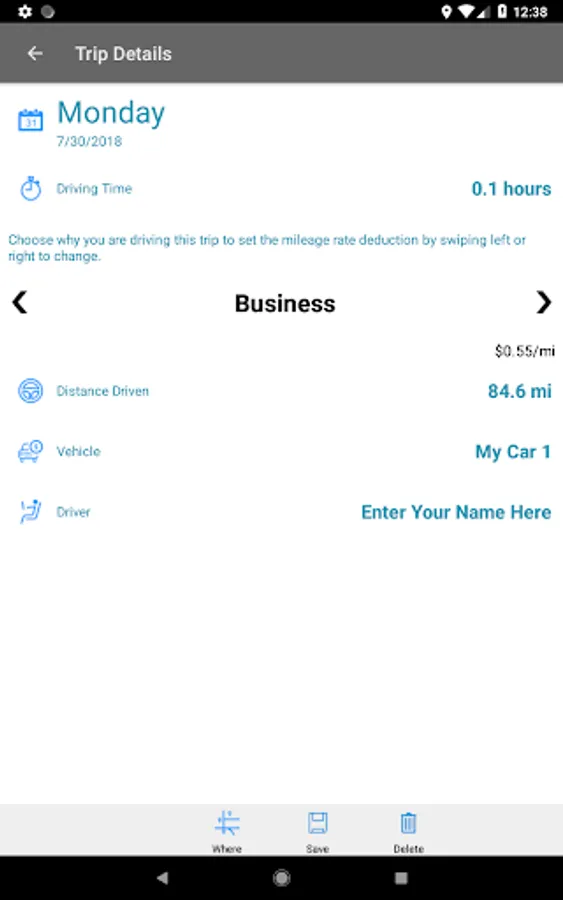 Use GPS or enter odometer readings manually at the start and end of a trip.