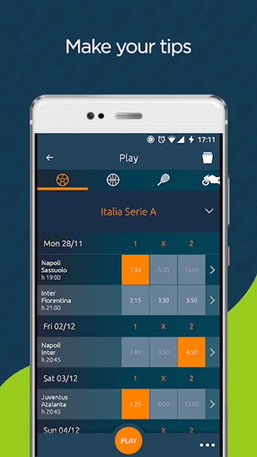 Do you have a particular preference for Premier League? Is your passion the foreign football? Do you always guess Champions League matches? Or are you a basketball lover? You can choose one or more of our specific competitions. A diversified offer to meet the tastes of all of our users.