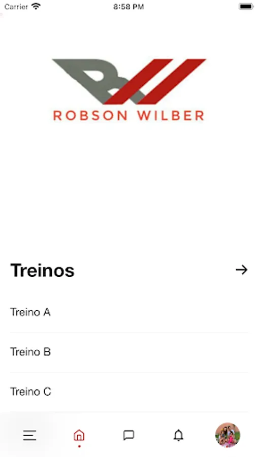 Platform aimed at coach Robson Wilber's students, with exclusive and personalized workouts to train anytime.