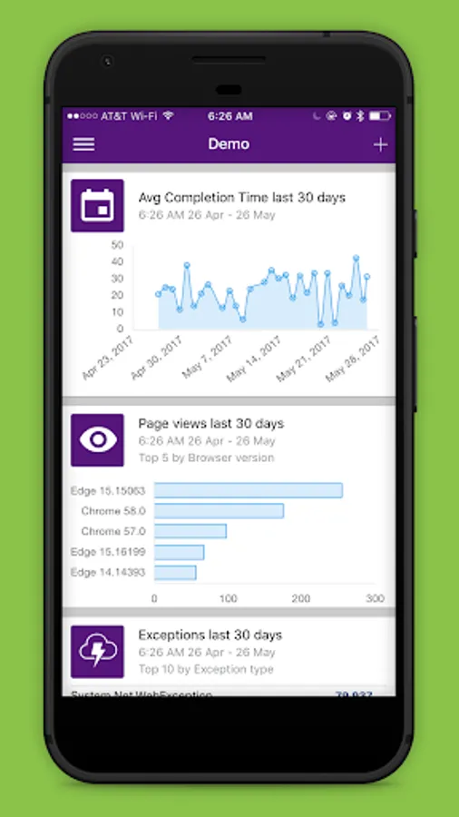This is the unofficial app for Microsoft Azure Application Insights. It allows simple connection to your Azure Application Insights services to provide customizable metrics, graphs and tables in a live feed.