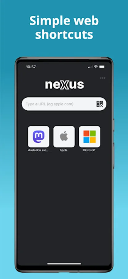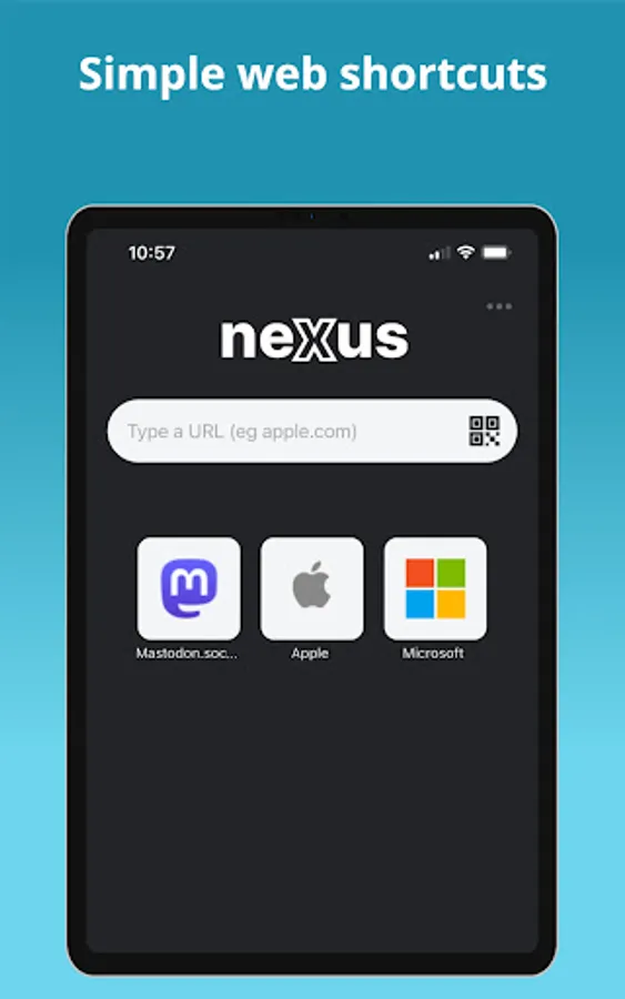 Simply enter the domain you are looking for (even leave off .com) like apple, microsoft, twitter, google, bing and begin browsing. You can also scan a QR Code to quickly visit a web page (great for restaurant menus).