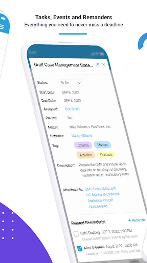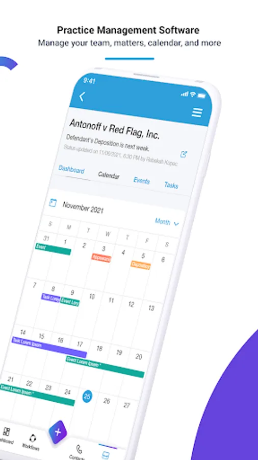 The latest legal practice management software, AppearMe Manage, is a free tool to manage your entire law firm, events and tasks, as well as all contacts in our cloud-based free CRM. Workflow automation lets you calendar your procedural and internal set of tasks/events to all matters with one click.