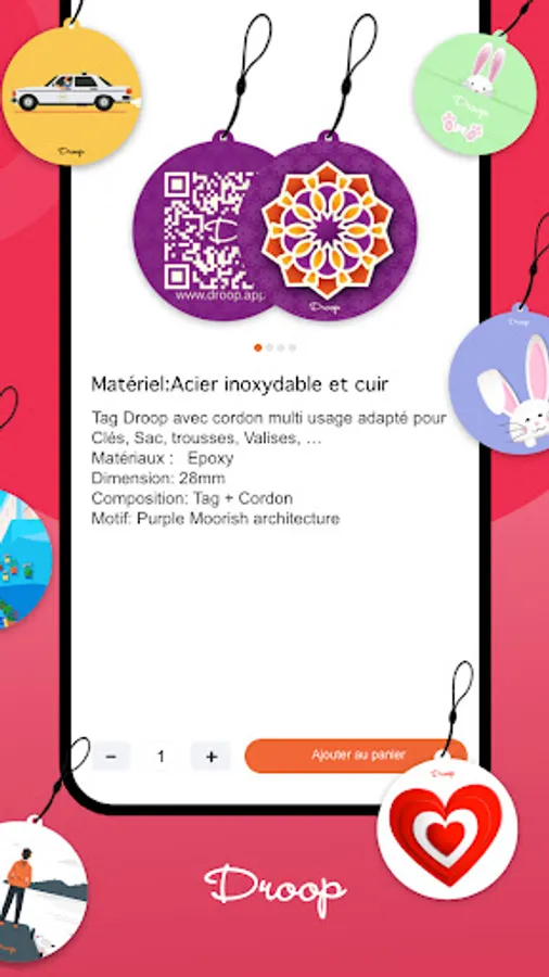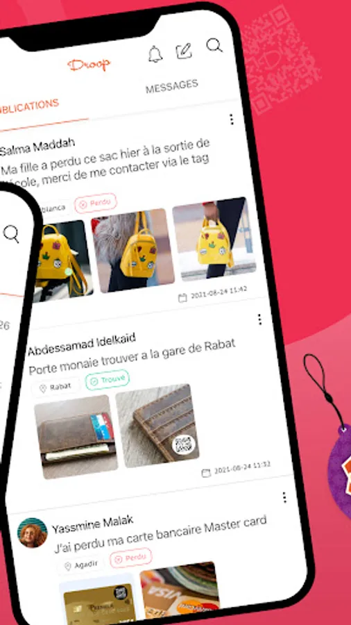 RETROUVER GRACE AU RESEAU DROOP : utilisez l'application Droop pour scanner vos objets ou ceux que vous trouvez et entrez directement en contact avec le propriétaires de l’objet sans divulguer vos informations personnelles