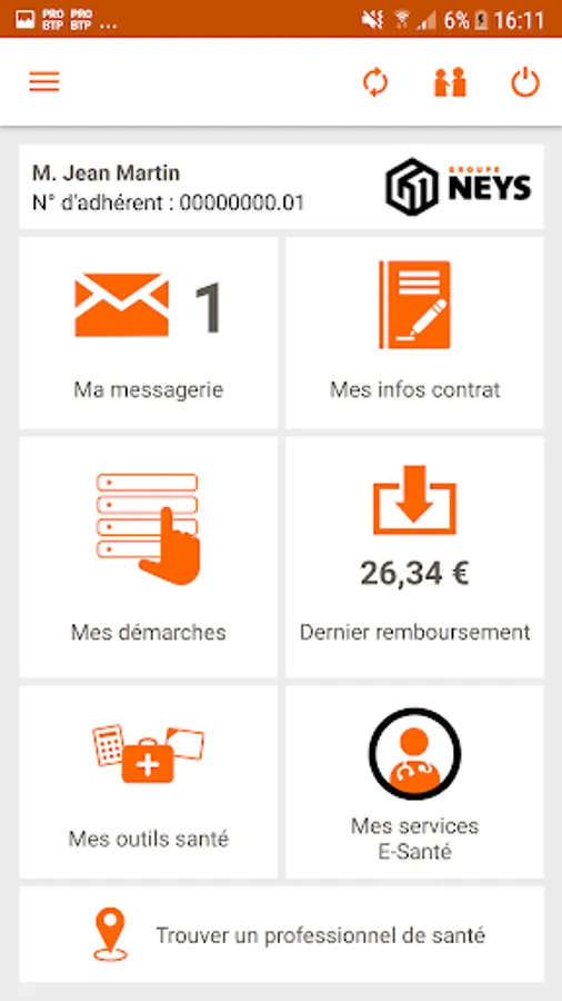 With the Neys - Santé Group Android app, you can track your refunds and access your contract information at any time.