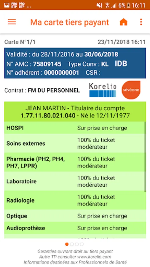 You can present it to partner health professionals and send a certificate to those who apply. In case of loss, you can also request a reissue of your card for the current validity period that you will receive by mail.