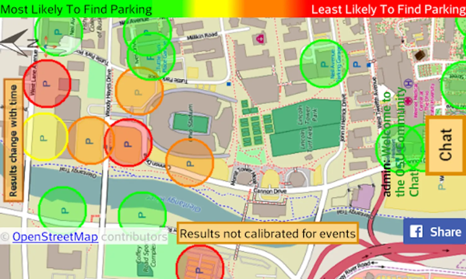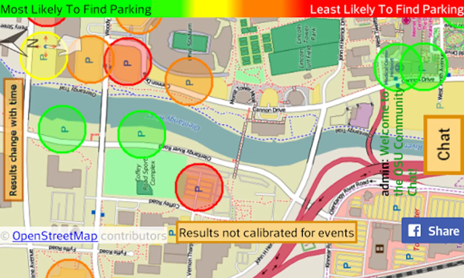 Find parking easily at OSU! This is an independently made app made for student commuters at the Ohio State University community. Color indicators (green, yellow, orange, red) show the availability of parking of each of the lots and garages at OSU, green being most likely to find parking, and red being least likely to find parking. The color indicators are dynamic and change with time, giving you accurate results at any given time of the day.