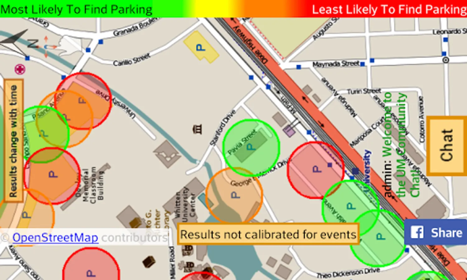 Find parking easily at UM! This is an independently made app made for student commuters at the University of Miami community. Color indicators (green, yellow, orange, red) show the availability of parking of each of the lots and garages at UM, green being most likely to find parking, and red being least likely to find parking. The color indicators are dynamic and change with time, giving you accurate results at any given time of the day.