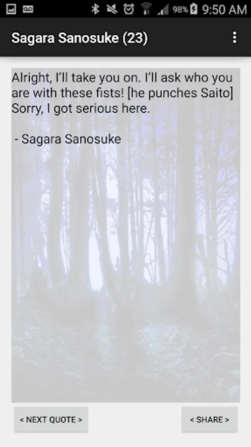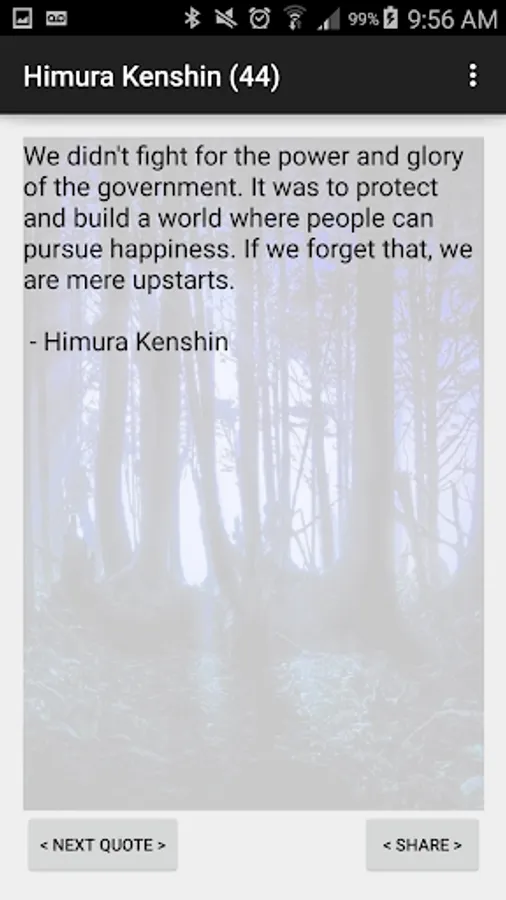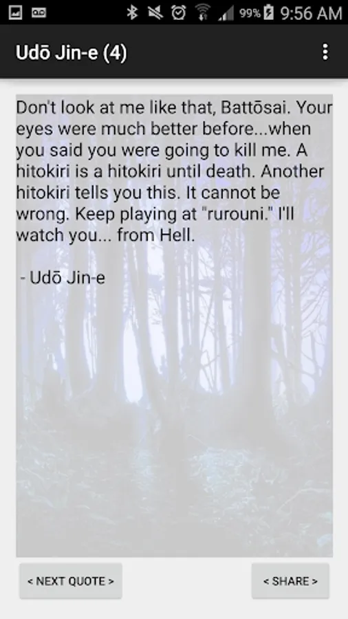 Allows users to share quotes from Rurouni Samurai via SMS, E-Mail, Social Media etc.