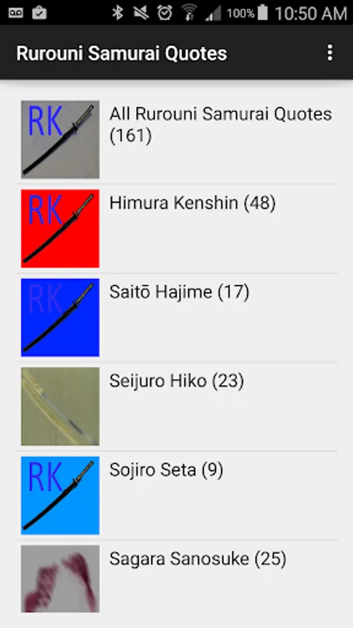 Most quotes are from Kenshin X anime / movie / manga in this app.