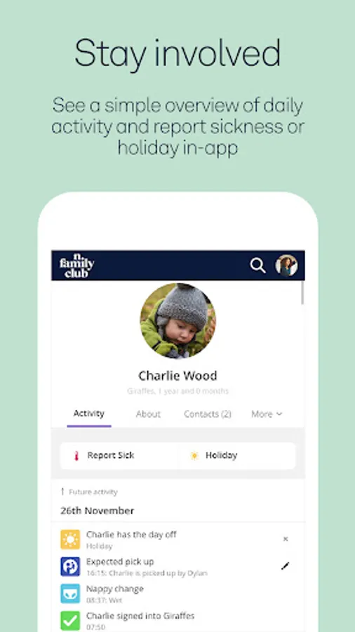 As well as seeing pictures of your child and updates from the nursery throughout the day, the N Family Club app gives you a quick and easy route to stay in touch with your child’s key worker and the nursery team. It’s also a great way to keep up to date with nursery events, manage payments, and so much more