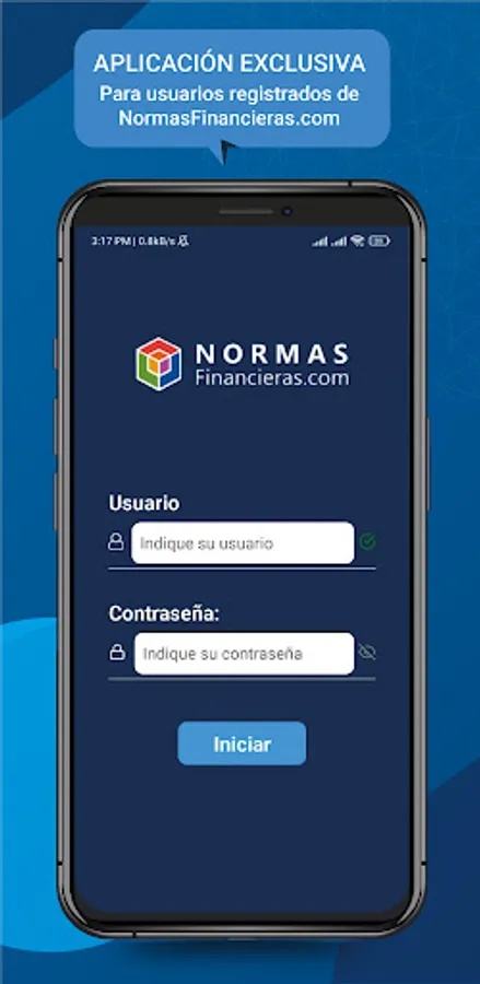 This application is for the exclusive use of registered users of NormsFinancieras.com who have this previously contracted App service.