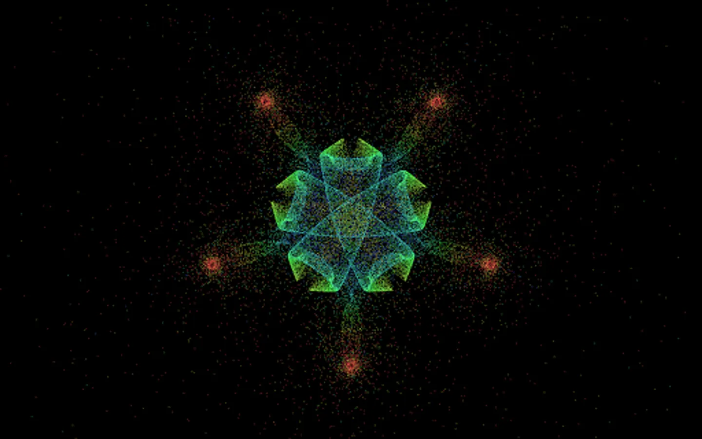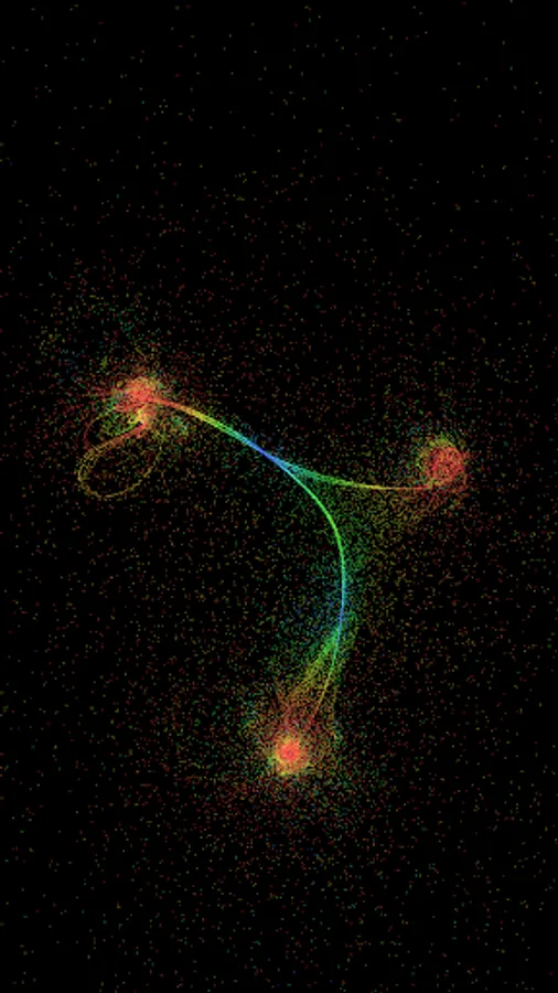 This open-source app displays 50,000 particles attracted to up to 5 points that you can move with your fingers.
