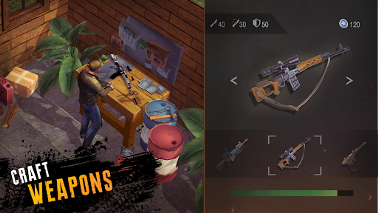 Our survival game is unpredictable: the last of us can always become a victim. Create power weapons like AK-47, M4, etc. and defend against the dead in daylight. In zombie shooter you can find guns in far cry locations.