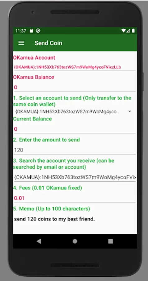 7. Fixed Fee: Any transaction, anywhere in the world, is fixed at the fee OKamua Coin 0.01.