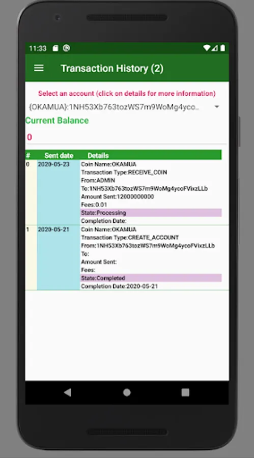 6. All transactions (sending coins, generating checks, and generating donation codes) can be checked in the transaction details menu on the app.
