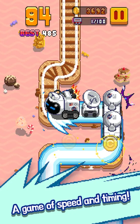The sequel to the enormously successful arcade game Infinite Stairs, which was downloaded 8 million times around the world, Infinite Train is a simple game that tests your timing and coordination. It's so addictive! Set new records with your hand-eye coordination, reflexes, and speed.