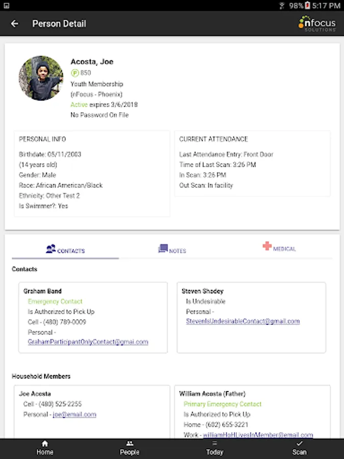 - Access participant emergency information, membership status and see who’s currently in your facility