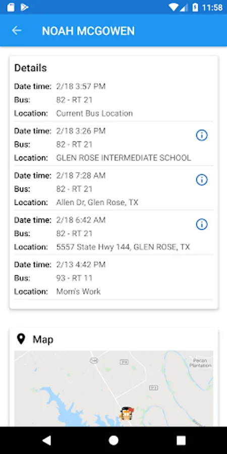 Parents can also see the bus en-route in the morning, so kids do not need to be exposed to inclement weather or standing on the side of the road unnecessarily. These features are in real-time and viewable on maps.