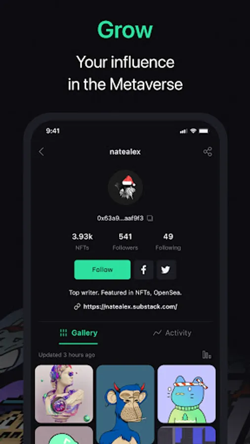 NFTBase.com is the free-to-use mobile/desktop NFT tracker for you to track prices performance, ETH address trades, NFT collection data/announcements, etc.