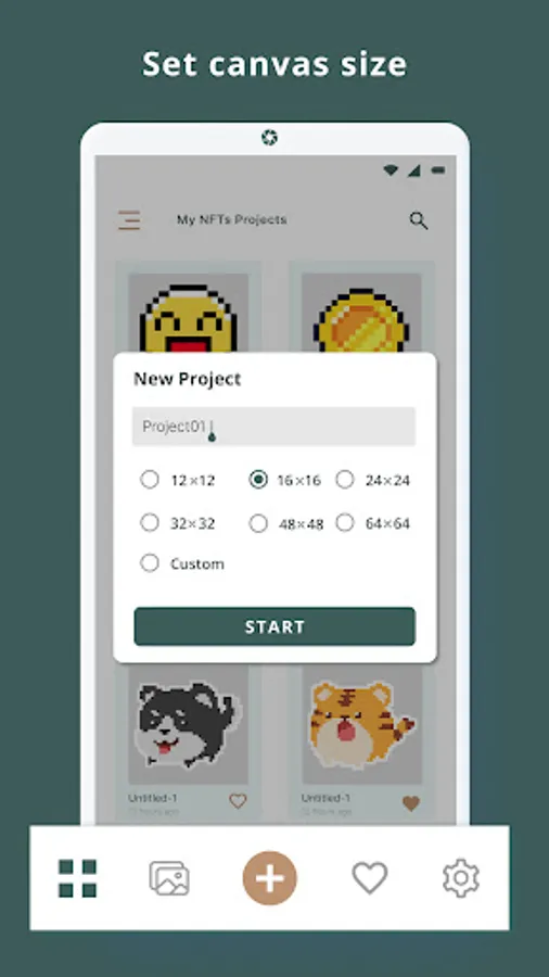 Pixel Art Maker - NFT Creator let you create unlimited nfts with phone by drawing pixel art easily and will be your favorite bit painter pixel art maker app or pixel art coloring app. If you are looking for bit painter, pixel art coloring book, pixel art maker, ai art generator, making ai art work; this nft creator pixel art maker let you create pixel art easily. Pixel Art Maker - NFT Creator NFT creator tool; pixilart maker app can be used as pixel art coloring ai art generator or ai art maker as it let you make pixelated arts, nft art, nfts and crypto nfts with phone. Make a canvas according to your requirements and start making your dream ai art/pixel art with handy tools, every time you can change color of each pixel with this pixel art coloring book Pixel Art Maker - NFT Creator.