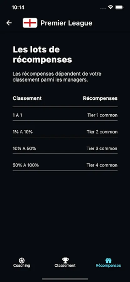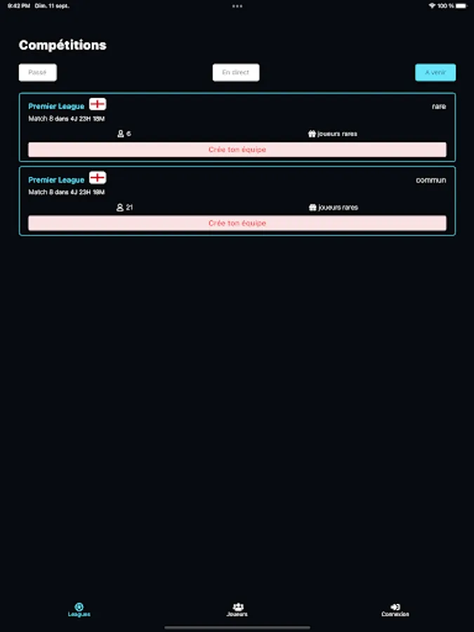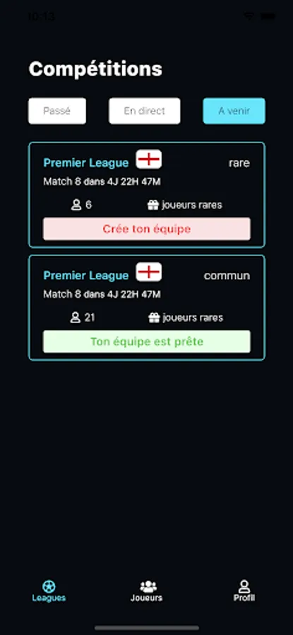 Currently, there is only one competition: The Premier League, the English football championship.