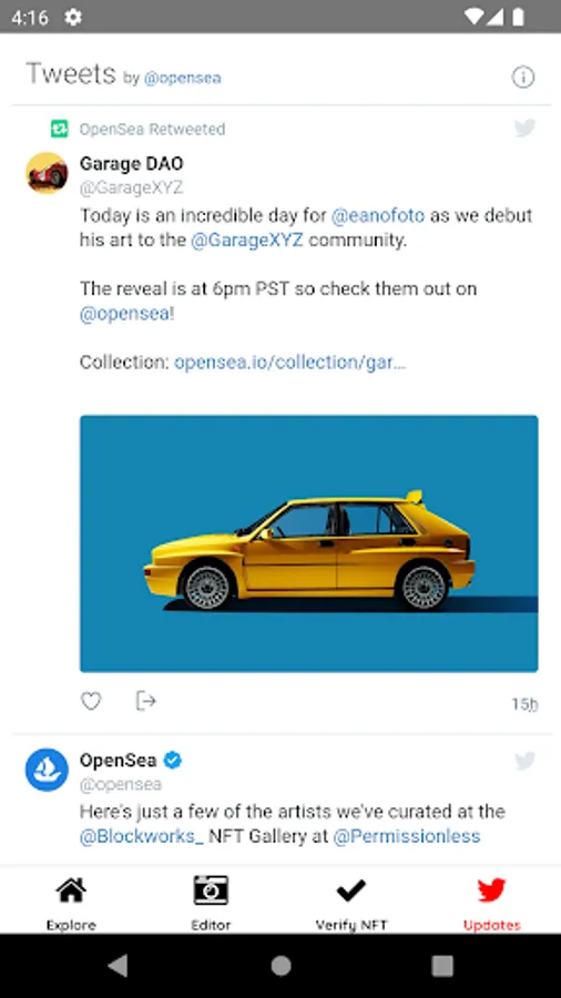 - 4. The NFT market place competition is massive. Keep yourself posted with the latest updates from the OpenSea twitter feed.