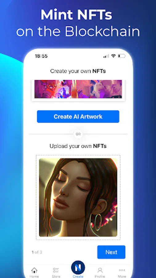 You can choose images, music and video from your gallery and mint them on the Polygon blockchain.