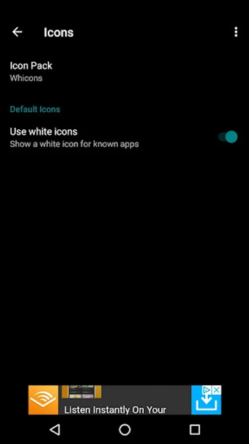 - Choose to show white icons (for known apps) or system/icon pack icons