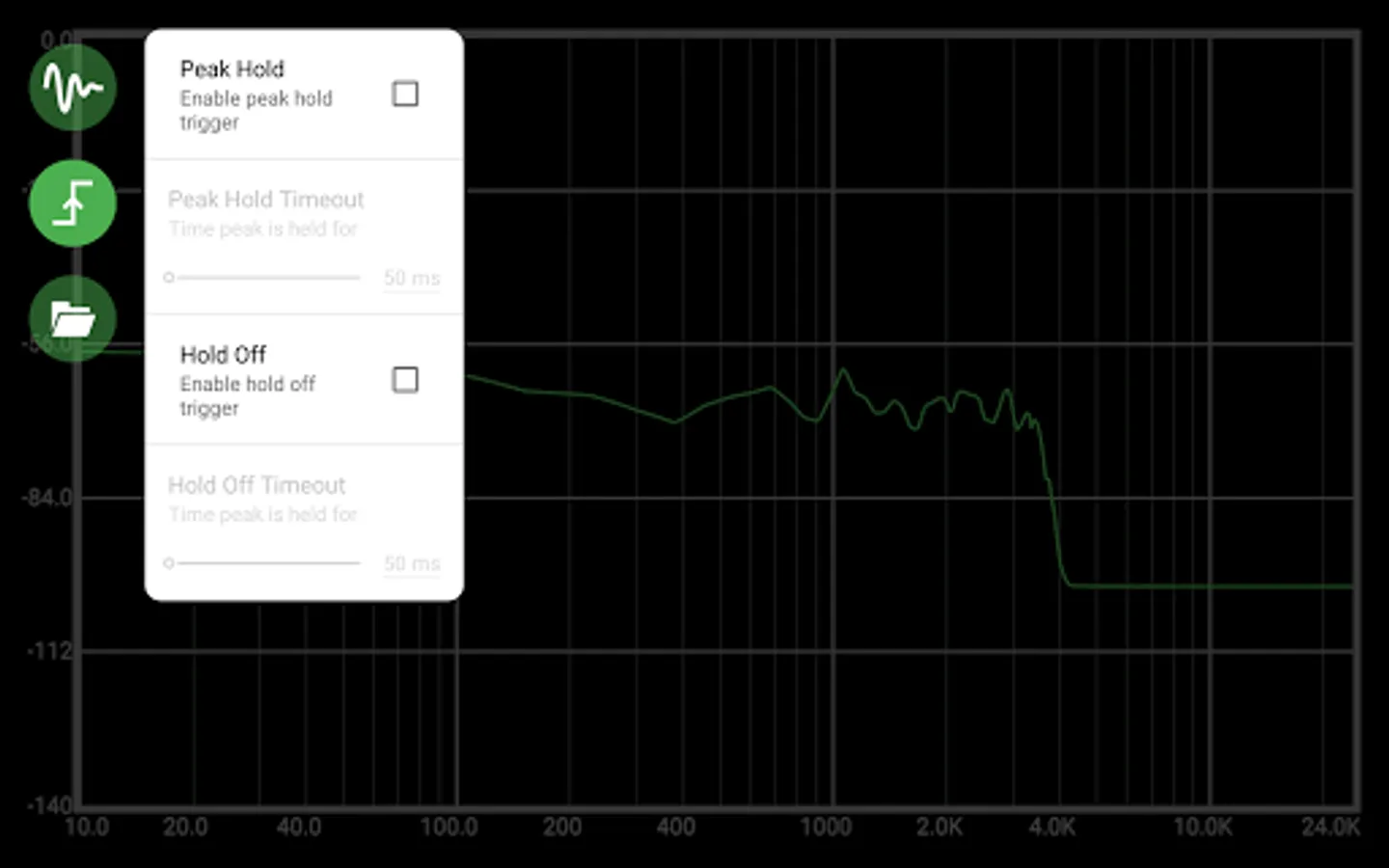 SpecScope Spectrum Analyzer 2 is a frequency spectrum analyzer using a FFT to acquire a fast and accurate representation your surroundings. It can be used in many audio and engineering situations to attain a power vs frequency plot.